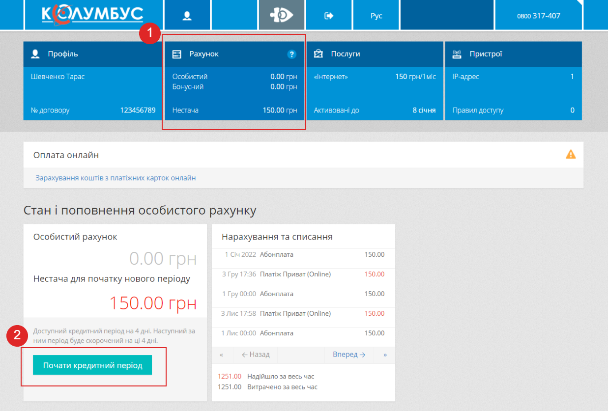 Активувати кредитний період на 4 дні можна самостійно в особистому кабінеті