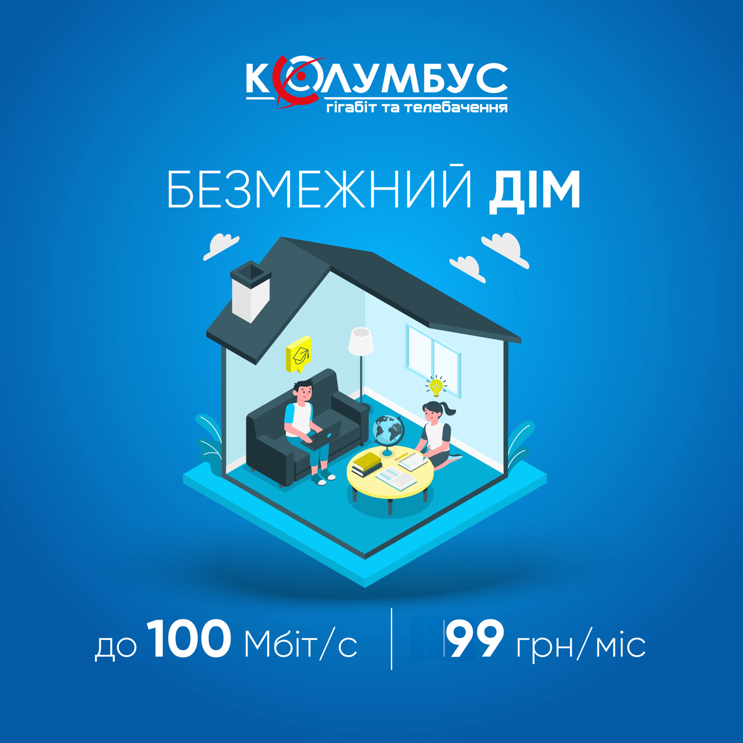 ГІГАБІТ від Колумбус – Це нова сучасна оптоволоконна мережа за технологією PON та FTTx (FTTH/FTTB). Швидкість передачі даних по такому каналу досягає 1 Гбіт/с (≈1000 Мбіт/с). Технологія може гарантувати надійний сигнал і високу швидкість доступу в будь-який час доби.